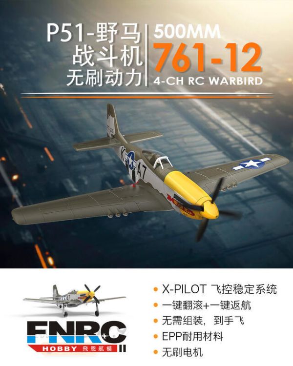全新VOLANTEX 歐蘭斯 無刷馬達500mm P-51野馬 帶六軸陀螺儀 + 一鍵救機 + 一鍵翻滾 四動 RTF 版